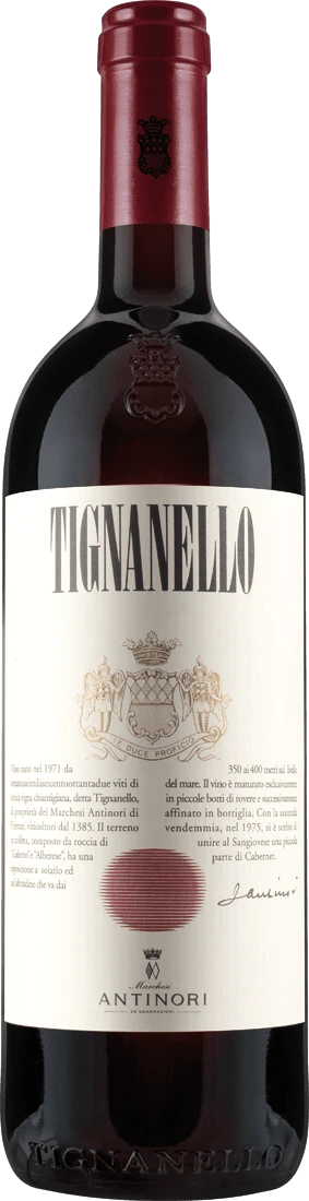 Die Einzigartigkeit des Tignanellos liegt in seiner historisch bedeutsamen Geschichte. Nicht nur war der Tignanello der erste Sangiovese, der im Barrique ausgebaut wurde. Er revolutionierte auch das Verständnis italienischer Weine in der Qualitätsfestlegung. Antinori verzichtete 1975 auf den damals gängigen Verschnitt eines Chiantis mit weißen Trauben und orientierte sich an einem internationalen Stil, indem die nicht-traditionellen Rebsorten Cabernet Sauvignon und Cabernet Franc hinzugefügt wurden. Damit konkurriert der Tignanello mit der Langlebigkeit und Stilistik großer Bordeaux, ohne dabei seine eigenständige Note zu verleugnen.