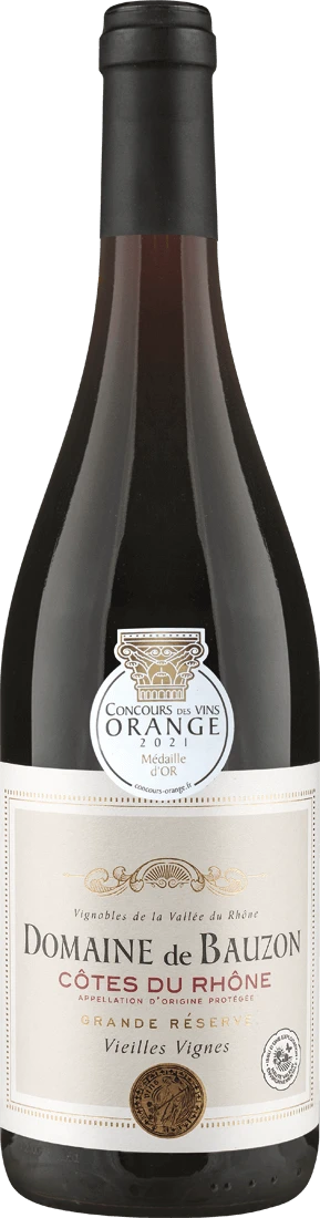 Die Domaine de Bauzon, welche insgesamt 51 Hektar umfasst, wurde 1926 von Albert Mazur gegründet und liegt hauptsächlich in der Gemeinde Bollène. Die Besonderheit bei diesem Weingut sine die Rebstöcke. Sie sind im Durchschnitt über 50 Jahre alt, einige sind sogar über 90 Jahre alt. Deswegen trägt der Wein den Zusatznamen „Vieilles Vignes“ (dt. Alte Reben). Bereits 1933 wurden diese Rebstöcke von Albert Mazur persönlich gepflanzt! Es sind hauptsächlich Syrah-, Grenache Noir-, Mourvèdre- und Carignan-Reben. Eine weitere Besonderheit des Weinguts ist, dass die Reben auf Ton-Kalk-Böden gepflanzt sind, die mit kleinen gewalzten Kieseln bedeckt sind. Diese Bodenart findet man normalerweise im berühmten Anbaugebiet Châteauneuf du Pape, aus denen einige der teuersten Weine Frankreichs herkommen. So sind die Weine von der Domaine de Bauzon sowohl reichhaltig und intensiv, aber auch geschmeidig und sehr seidig. Definitiv eine Entdeckung wert!